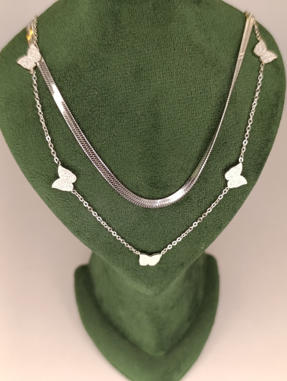 گردنبند های زنانه و دخترانه مجلسی پروانه دار ژوپینگ جنس تیتانیوم آبکاری نقره بسیار زیبا خاص و مجلسی دارای رنگ بندی و تنوع مدل
