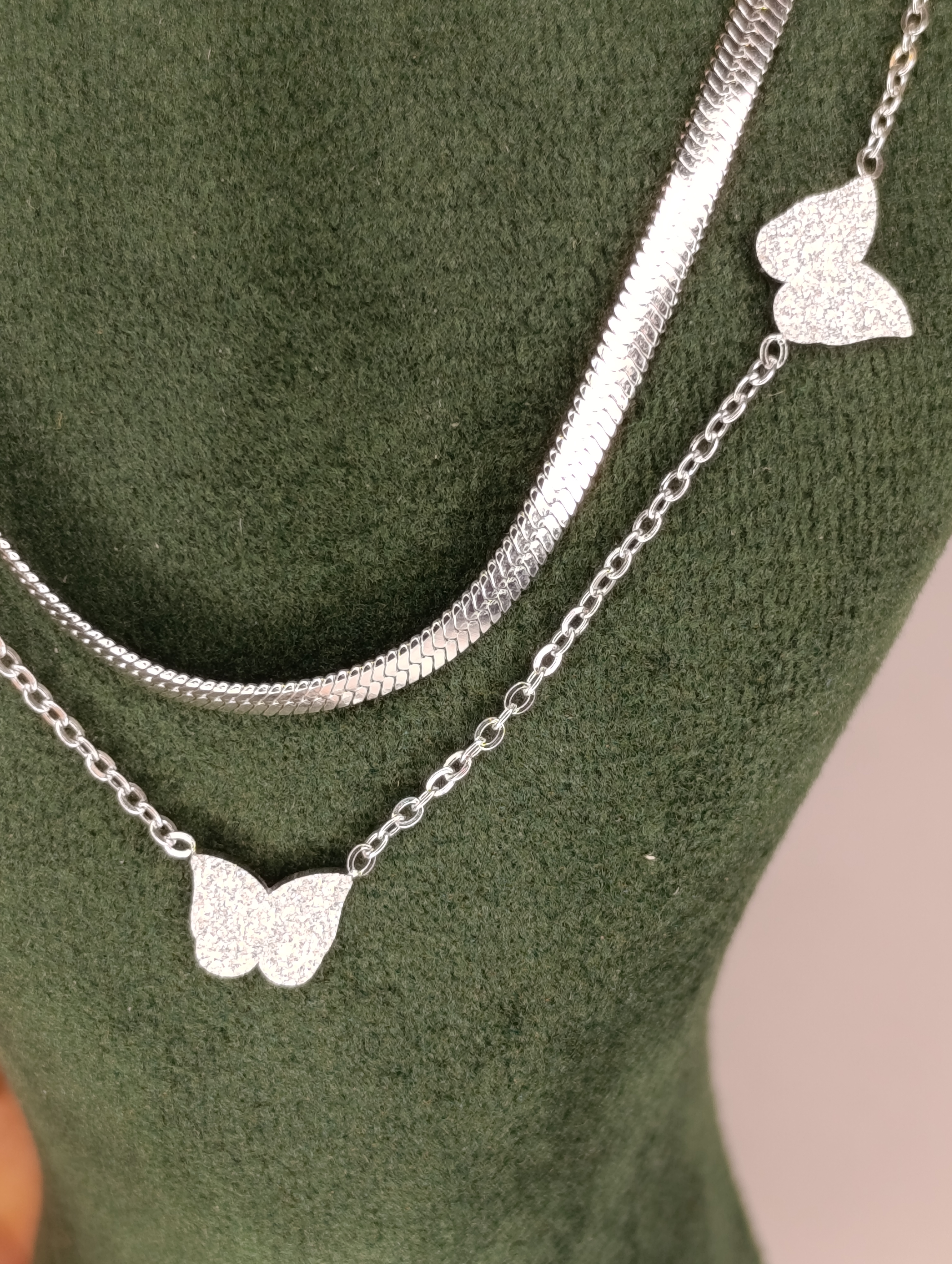گردنبند های زنانه و دخترانه مجلسی پروانه دار ژوپینگ جنس تیتانیوم آبکاری نقره بسیار زیبا خاص و مجلسی دارای رنگ بندی و تنوع مدل