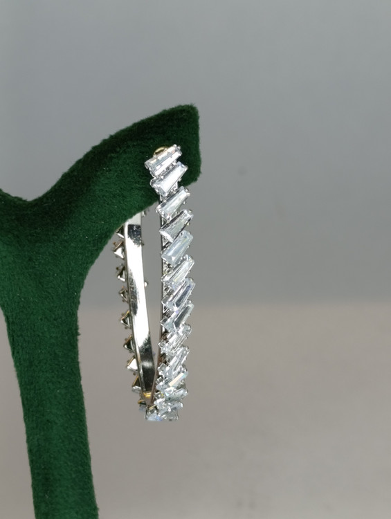 گوشواره حلقه ایی نگین کاری شده مجلسی تیتانیوم آبکاری نقره بسیار زیبا و خاص و خاص پسند مناسب برای عروسی و مهمانی های مهم