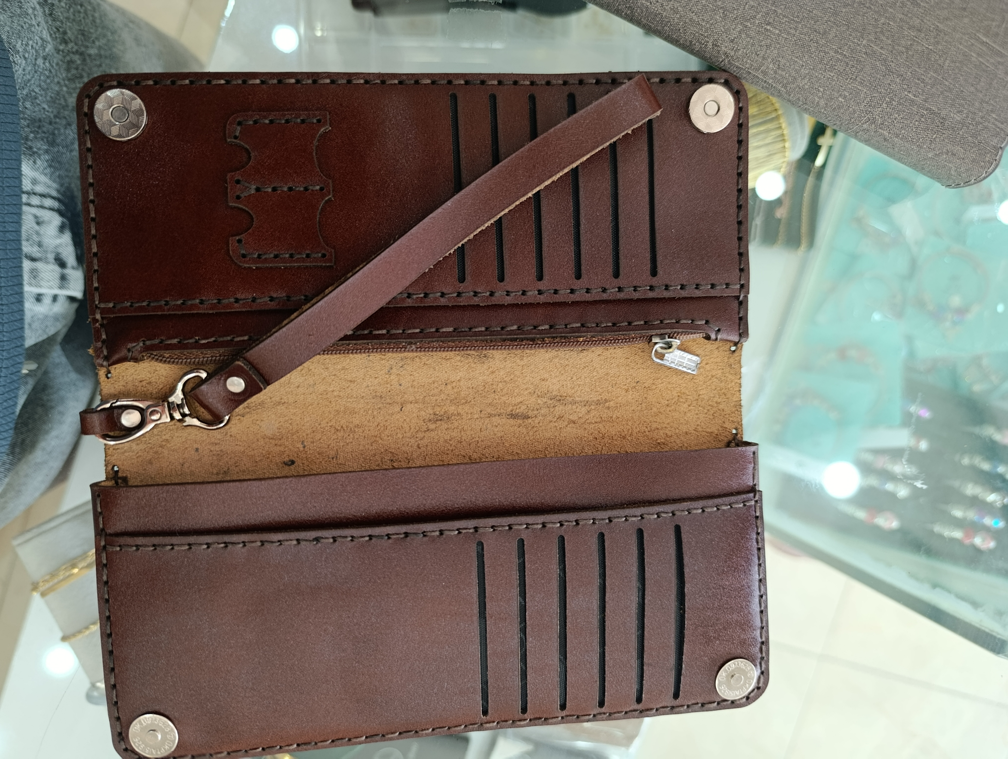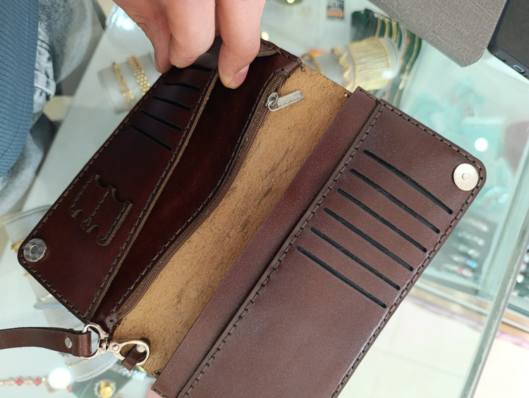 کیف پول تمام چرم طبیعی گاوی دارای جای گوشی و جای کارت مجازی خودکار،دارای دسته مچ گیر با بهترین کیفیت بسیار خاص و جذاب و شیک